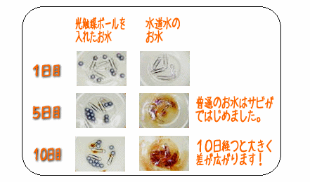 水道水に光触媒ボールとクリップの入れたものと、そのまま水道水にクリップを入れたものを10日間比較してみました。