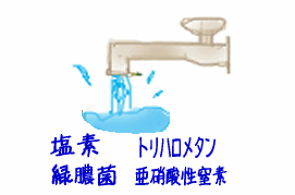 水道水にはカビや細菌などの消毒剤として用いられている塩素が含まれています。他の国と比較して日本の水道水は安全と言われているのですが、塩素は皮膚に対して刺激物であることは、プールや台所の漂白剤などで明らかです。また、塩素では死なない(アトピーの原因菌とされる緑膿菌)や塩素が反応して生じる消毒副生生物(トリハロメタン)など有害な物質も含まれているといわれています。